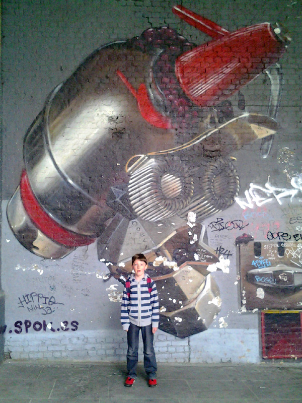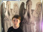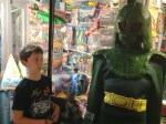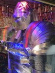 Next I visited the exhibition ‘Step into the TARDIS’ which I entered by going into a Police Box. I was a bit worried as I didn’t know what was going to be through the door! The first thing I saw was an Ice-Warrior and then I saw a very loud and big pinball machine from the late 80’s, which showed Doctors 1-7. The room was stuffed full of  Doctor Who toys, and dummies of the Doctor’s friends and foes such as the Ood, The Sisters of Plenitude, a Clockwork Robot, Pigslave and Scarecrow. The worst monsters were behind glass, which was very very very lucky or we could have had a big shock! Trapped behind the glass were Davros and the Daleks, a Cybershade, Cybermen, Melkur and many other baddies. I also saw the real suit of armour worn by Christopher Bowen as Mordred in the episode Battlefield (1989), it looked shiny and very heavy. There were over 60 life-size Doctor Who characters to see.