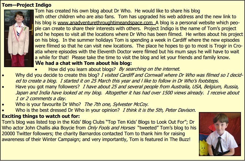 Please look here to see some places where Project Indigo has been featured. I hope that one day I will be featured in Doctor Who Magazine! If you see Project Indigo featured anywhere else please get in touch and let me know.